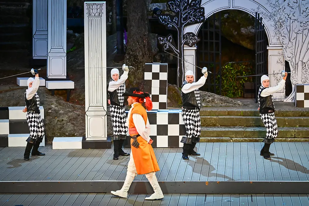In der neuen Fassung von Susanne Felicitas Wolf sind DIE DREI MUSKETIERE ein opulentes, mitreißendes und ebenso feinsinniges Theaterereignis. Der Mantel- und Degen-Klassiker ist wie geschaffen für die große Felsenbühne und verbindet Leidenschaft mit Abenteuer, Poesie mit Dramatik und Spannung mit Witz!